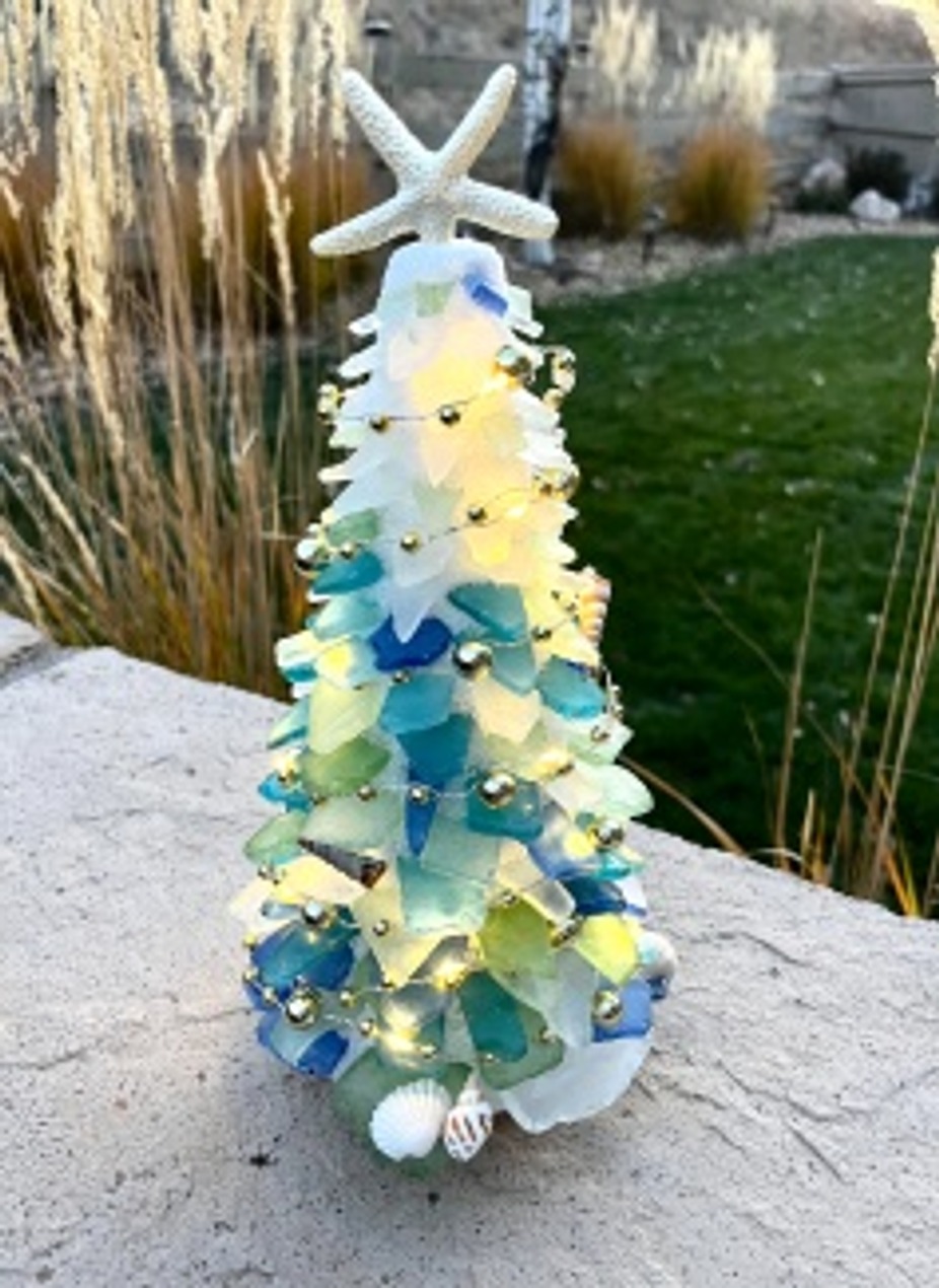 JEN WITH JUST ARTIN' AROUND IN CASTLE ROCK WILL WALK YOU THROUGH THIS ADORABLE SEA GLASS TREE WORKSHOP.
